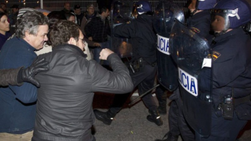 11.50: Barajas-lufthavnen i Madrid fik til formiddag besøg af 150 demonstranter, som gennemførte flere protester mod nedskæringer og besparelser inden for flytrafikken. Flere strejkevagter forsøgte at lukke en kiosk. Demonstranter i lufthavnen krævede løsladelse af den første person, der i nat blev anholdt under en aktion foran en McDonald's restaurant.