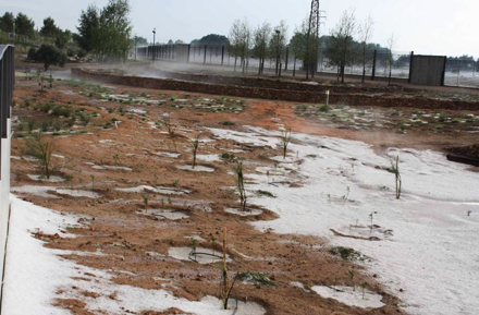 Samtidig med at hele Sydspanien er ramt af kraftig tørke og omfattende skovbrande, blev indbyggerne i den midt-spanske by Albacete i går overrasket af et voldsomt uvejr med hagl og voldsomme vindstød.