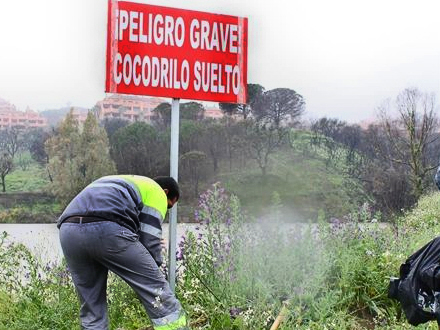 Alligatoren blev spottet sidste måned i området La Majada i Mijas, og i sidste uge blev der fundet spor ved søbredden, som viser at alligatoren vejer omkring 70 kilo og er i nærheden af to meter lang.
