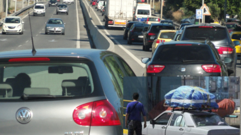 Det er marokkanere, der arbejder i de europæiske lande, som skal på sommerferie hos familien i Marokko. Man tror næsten ikke sine egne øjne, når man ser bilernes oppakning på tagene. Det er alt sammen varer til familien i hjemlandet, som kan være vanskelige, dyre eller helt umulige at købe der.