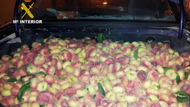 Ved en gård i Cieza i Murcia anholdt politiet forleden fem personer. De blev taget på fersk gerning på en landejendom, men nåede at smutte af sted i to biler, inden politiet nåede frem. Det lykkedes dog betjentene at indhente bilerne, som var lastet med ikke mindre end et halvt ton friskplukkede ferskener. Tyvegodset er blevet leveret tilbage til ejermanden, og tyvene er sidder bag lås og slå.