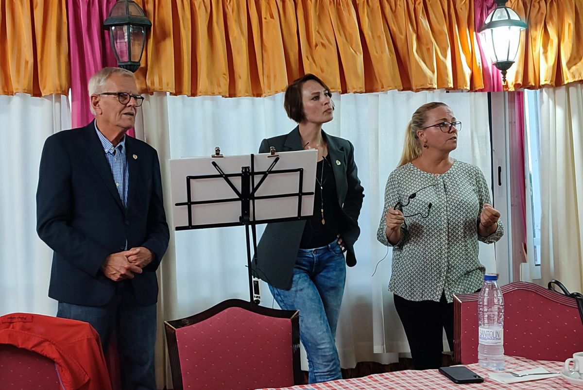 Karen Margrethe Engelbreckt byder velkommen med præst Annalise Bager og pianist (og ægtefælle) Helge Engelbreckt