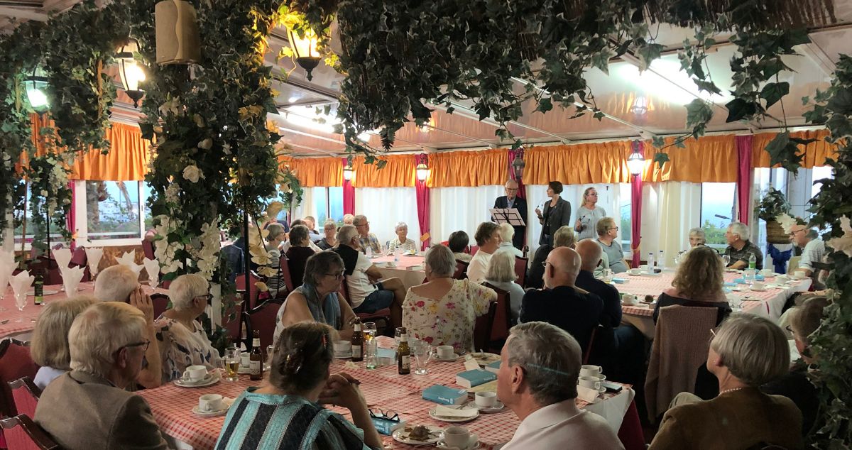 Aftenen var en kombination af kaffebord, foredrag, sang, middag og servicemeddelelser fra formanden Karen Margrethe Engelbreckt.