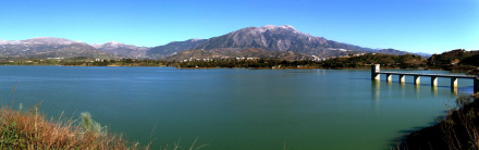 Vi kommer forbi to landsbyer, Colmenar og Riogordo, og derfra til vandreservoiret La Viñuela, som på grund af den megen regn i år er fyldt til bristepunktet. Det er længe siden, der har været så meget vand ved dæmningen.
