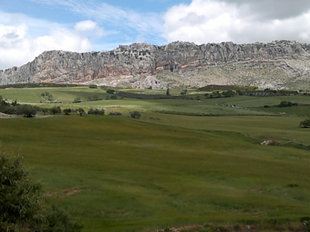 Fra Casabermeja gik turen fra afkørsel 124 mod Colmenar/Riogordo over A-356. Blødt landskab med grønne bakker og marker. Foråret har rundhåndet pyntet landskabet med gule blomster og vilde margueritter.