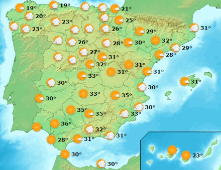 Både i Málaga Provinsen og i Valencia har gennemsnitstemperaturen i juli været 0,7 grader over normalen fra perioden 1971 til år 2000. På landsplan endte gennemsnittet for juli på 25 grader, hvilket er 1,6 grader over normalen.