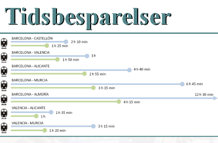 Året efter vil udvidelsen af jernbanen mellem Vadellós og Tarragona stå færdig, og dermed skulle "flaske-hals-problemet" på strækningen mellem Barcelona og Valencia være løst. Dermed bliver rejsetiden mellem Valencia og Alicante på sølle halvanden time.
