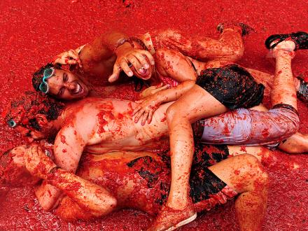 La Tomatina er tomatfesten over dem alle og fik i februar international berømmelse, da den indgik i optagelserne til en Bollywood-film. Blandt deltagerne i tomatkrigen er turister fra fjerne lande som Japan, Indien, Australien og USA.
