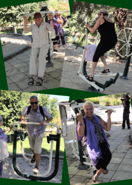 Efter drinken var det godt med noget fitness-sjov i folkeparkens maskiner