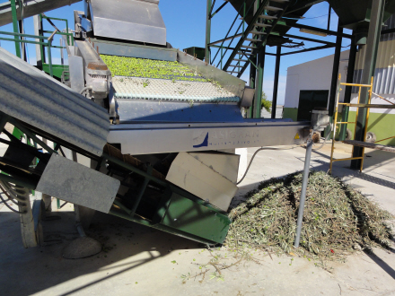 Høsten af de grønne oliven er dog i gang og her renses de for blade og kviste