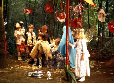 Børnene har øvet sig i lang tid på deres sang. Her 'Pastorales' (hyrdekor)