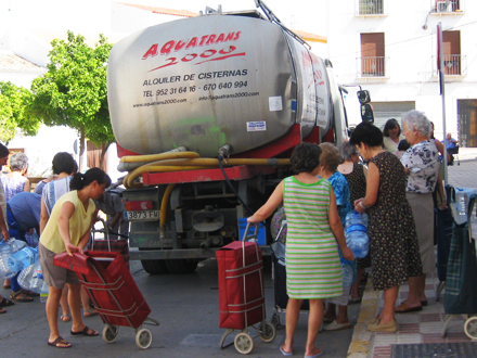 Indbyggerne i den lille landkommune Sierra de Yeguas i den nordlige del af Málaga Provinsen, har ikke haft vand i hanerne i tre uger. De må i stedet hamstre vand med spande og dunke, når tankvognen kommer til byen to gange om ugen.