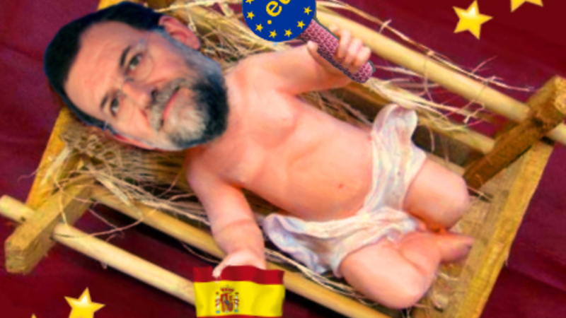 Er det blasfemi, at afbilde Spaniens nye premierminister, Mariano Rajoy, som Jesus-barnet i krybben? Ja, vil mange nok svare. Først katolikkern...