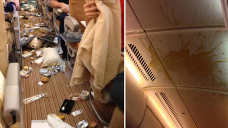 Passagerer i flyet siger til Associated Press, at turbulensen kun varede et par sekunder, men at en udløste panik i kabinen, da de andre passagerer lettede fra sæderne.
