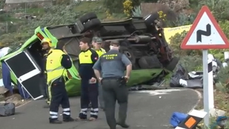 Ifølge La Provincia blev også bussens chauffør skadet, da den væltede ned over en skrænt.