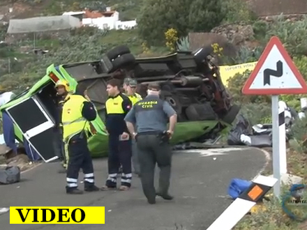 Minibussen med 17 ældre schweiziske turister, en rejseleder og chauffør væltede i går på en landevej i el Ingenio på det sydøstlige Gran Canaria. En person omkom, otte blev alvorligt skadet, fire har mindre alvorlige skader, og fem er lettere skadet.