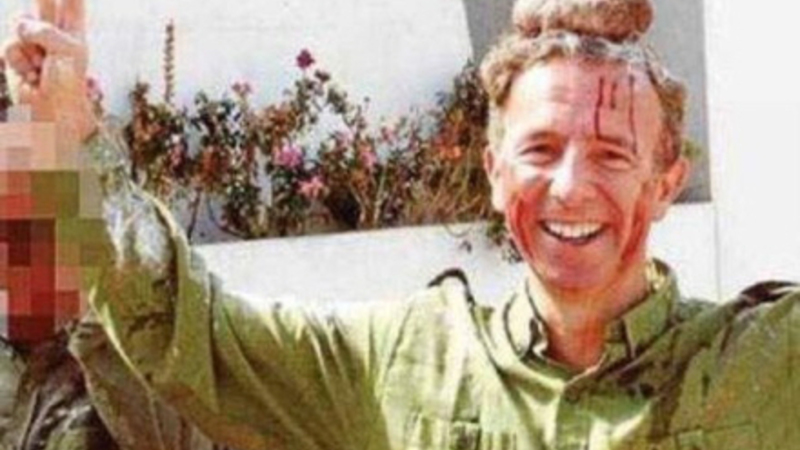 Turistformanden står med et stor smil på læberne, mens blodet løber ned over hans ansigt og han laver sejrstegnet med to fingre. Nogle gange signalerer v-tegnet også fred, men det må man antage ikke er tilfældet her.