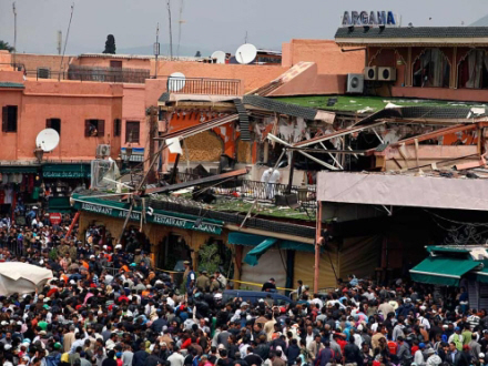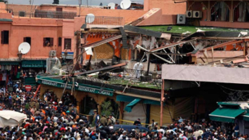 Øjenvidner fortæller til nyhedsbureauet AFP, at de så en mand bestille et glas juice på terrassen af Argana de Marraquech. Baren ligger lige ved et af de mest trafikerede torve i byen. Få minutter senere sprang han ud fra terrassen og udløste samtidig en bombe, som eksploderede lige over det tætpakkede torv.