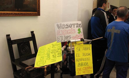 Trods meddelelsen om hotellets lukning, valgte medarbejderne alligevel af møde op i går mandag, hvor de gennemførte flere protester. Det lykkedes de ansatte at komme ind i bygningen, hvor de krævede et møde med repræsentanter for BBVA og det selskab, som har stået for hotellets drift.