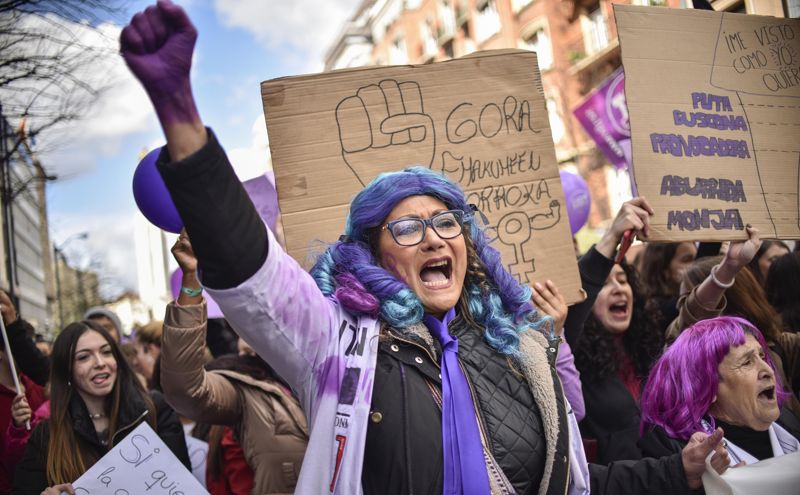 Tusinder af kvinder demonstrerede i hele Spanien for ligestilling og mod vold mod kvinder