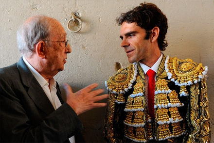 Tyrefægteren fra Madrid, José Tomás, sammen med lederen af La Monumental, Pedro Balaña