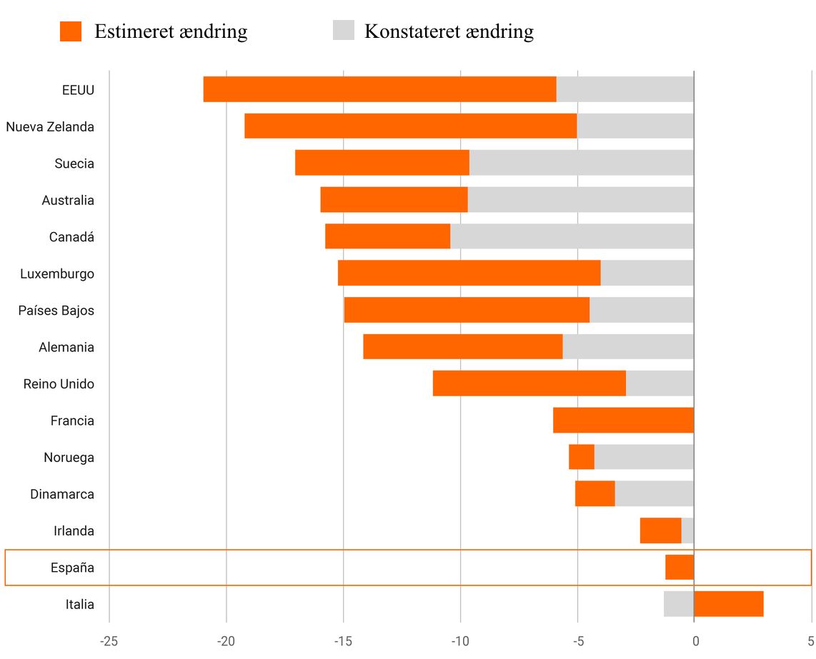 Undersøgelsen peger på potentielle korrektioner for gennemsnittet af de analyserede lande på omkring 15 procent. Men to nuancer skiller sig ud: