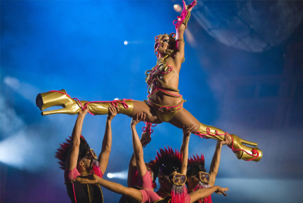 Iført støvler med høje plateauhæle, farvestrålende makeup, masker, pyntefjer og kunstige negle bevæger de forklædte mænd sig rundt på scenen uden at miste balancen. Deres show tager altid kegler, og tilskuerne nyder hvert eneste sekund.
