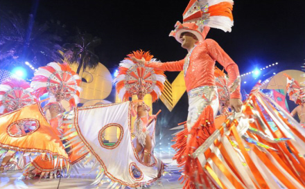 Dagen efter denne finale er salsa, gyngende hofter og farvestrålende kostumer de bærende elementer ved en gallaforestilling for 'comparsas' (dansetrupper).