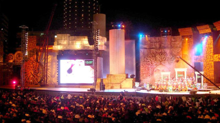 Men inden da har indbyggerne varmet op til de intense dage ved at overvære morsomme kabaret- og revyforestillinger i folkeparken.
