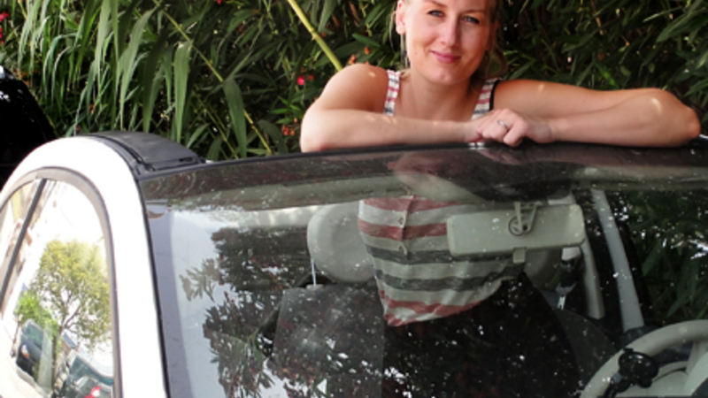 Vejret kan man i hvert fald ikke klage over. Medmindre man altså ikke er særlig glad for sol og varme. Og selvom jeg ikke kan prale med aircondition i min lille, nye automobil, så kan taget tages af, når jeg trænger til at blive luftet lidt.