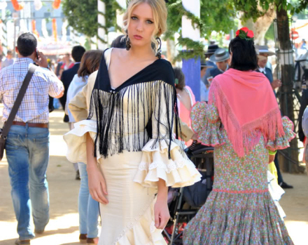 Her kan du iagttage bedårende kvinder i farvestrålende flamenco-drager, pyntet til den sidste detalje, som svæver omkring med den der ”gracia”; den helt særlige charmerende og graciøse elegance, som kun andalusiske kvinder har. Og her er det helt ligegyldigt om det er tykke, tynde, gamle, unge, lave eller høje. Det er noget alle har.