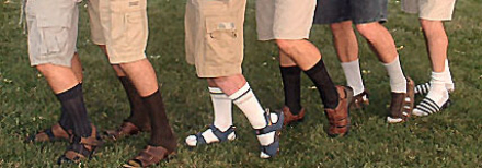Og så skal vi også for god orden sige, at herrerne ikke går rundt i bar overkrop, selv om der er 35 grader. Og sidst, men bestemt ikke mindst: Ingen strømper i sandalerne!