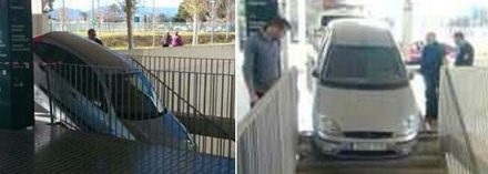 Bilens fører, en 60-årig mand, var kommet til at tage fejl og var kørt ned ad trappen i stedet for at tage rampen til biler.