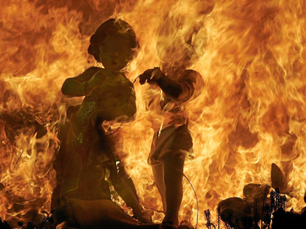 Som navnet antyder, spiller ilden en central rolle. Dukker - ninots - er bygget i løbet af året, og nogle af dem koster op til 75.000 €. Hele kvarterer bidrager til at lave deres ninot. Dukkerne er omhyggeligt udformet og meget livagtige (nyere festligheder har inkluderet satiriske marionetter af politikere og berømtheder).