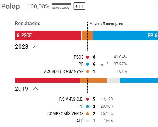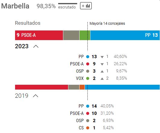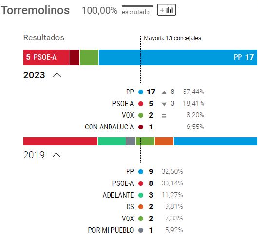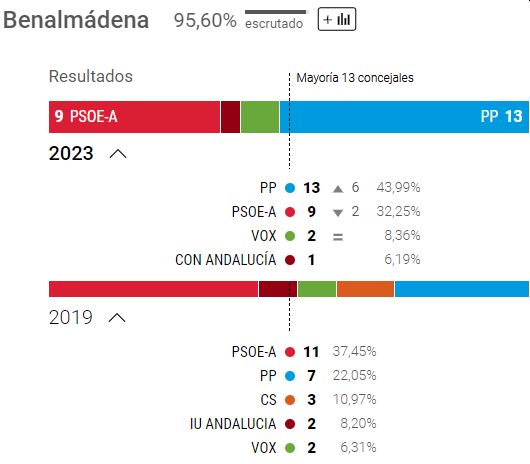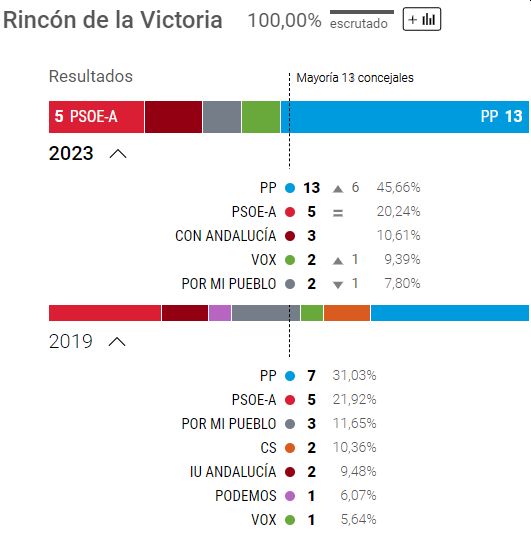 Efter at have mistet et byrådsmedlem - og givet det til PSOE - har PP fortsat absolut flertal med 13 pladser.