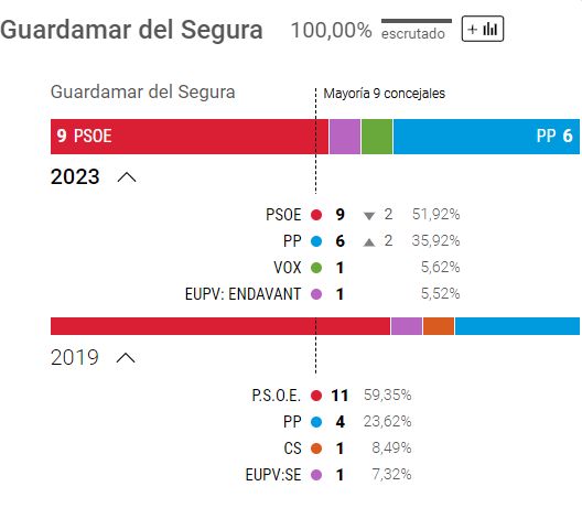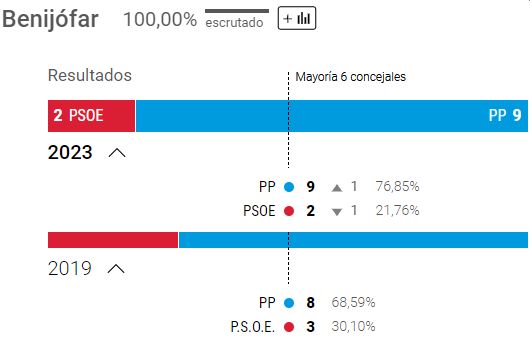 Kommunene i Alicante Provinsen er medtaget efter ønske fra en Amigos. Med 9 pladser har PP øger sit absolutte flertal i byrådets 13 medlemmer.