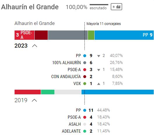 I Álora (Amigos-ønske) er PSOE gået markant frem og har fået solidt absolut flertal.