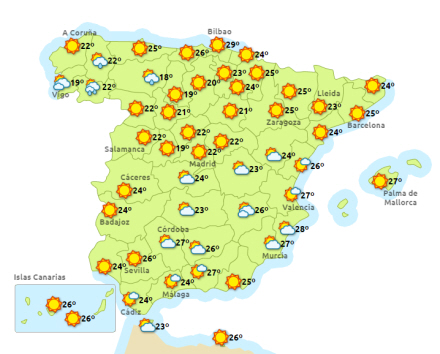 Vejret i Spanien, lørdag klokken 14:00