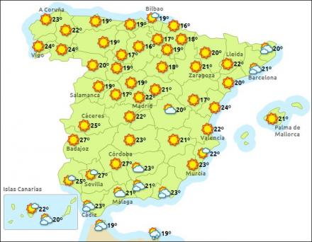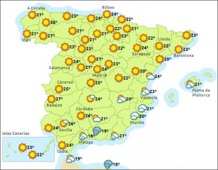Costa del Sol får i dag letskyet vejr og let til frisk vind fra sydøst. Mellem 15 og 20 grader. I morgen ret svag vind overvejende fra sydøst og op til 22 grader. Mandag og tirsdag letskyet og op til 23 grader, let vind fra skiftende retning. Onsdag bliver det en overgang mere skyet, og der kan være chance for en smule nedbør. Op til 23 grader og ret svag vind. Næste weekend mere skyet og uændrede temperaturer.