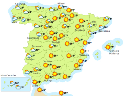 Vejret i Spanien, lørdag klokken 14:00
