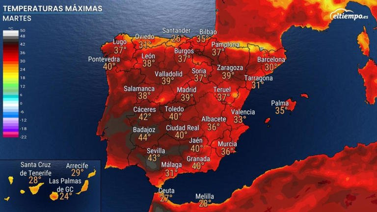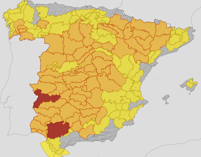 Fortsat varsel om meget høje temperaturer til det meste af halvøen og Mallorca. I nogle områder er man endda helt oppe i rød alarm, da der er udsigt til 44 grader.