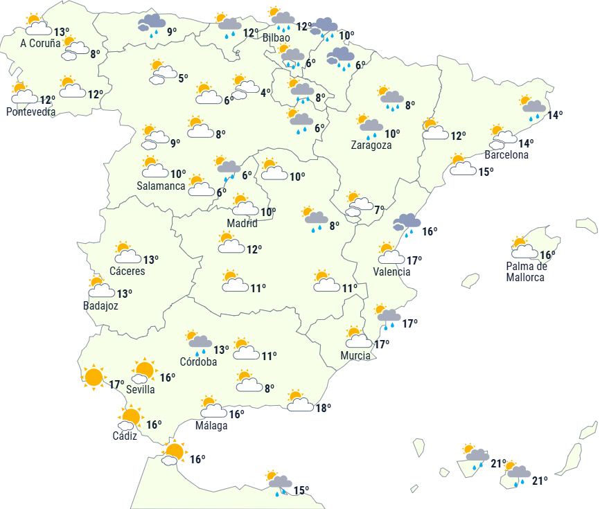 I dag bliver påvirket af resterne af den koldfront, der er forbundet med vinterstormen Ivo, der bevæger sig ind over fransk territorium mod Middelhavet, og den vil stadig påvirke områder i halvøens indre egne.