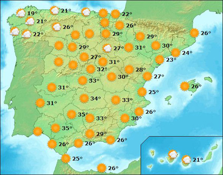 Vejr i Spanien, lørdag kl. 15:00