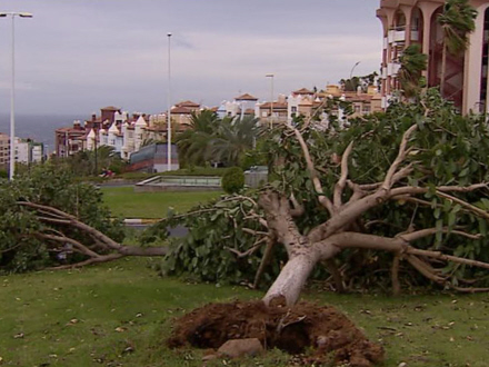 Der er også rapporter om træer og grene, der er blæst ned over vejene i San Miguel, La Orotava og Adeje på Tenerife. I Las Caletillas på motorvej TF-1 skete der et jordskred i dag. En 60-årig mand har lidt mindre kvæstelser, efter et vindue blæste ind Santa Cruz de Tenerife.