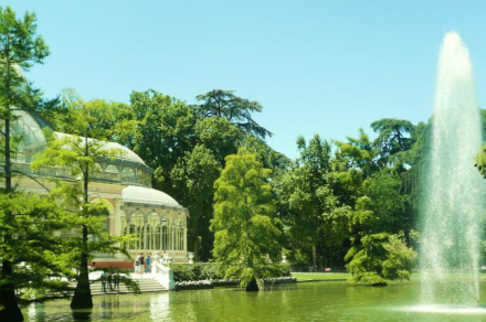 Krystalpaladset i Buen Retiro Park ser flot ud i solnedgangen