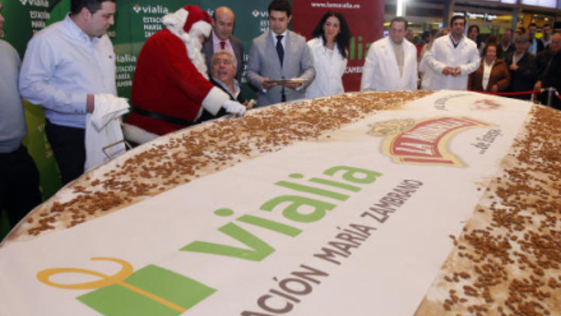 En sydspansk kagefabrik har fremstillet verdens største julekage, en 'pulverón', der er fem meter lang og over to meter bred.