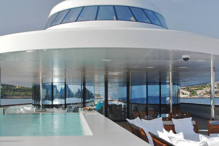 Gæster har hele seks suiter at vælge imellem med alle bekvemmeligheder, der er et bibliotek med 2.000 DVD-film, et discotek til uforglemmelige fester, to swimmingpool, helikopterlandingsplads og boblebad på dækket.