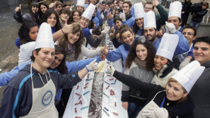 Mere end hundrede mennesker har været med til at lave verdens længste stykke chokolade i Montilla i Córdoba Provinsen