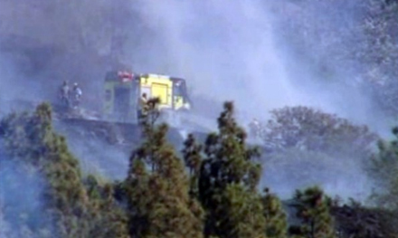 En person fra den civilforsvaret i Teror brækkede et ben og kom alvorligt til skade under slukningsarbejdet, da han blev ramt af en kæmpe sten, der styrtede ned fra bjergskråningen i Cueva Grande.
