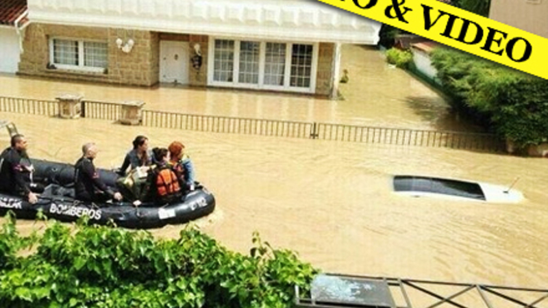 Ekstremt meget nedbør over Navarra i Nordspanien har medført voldsomme oversvømmelser langs Arga-floden gennem Pamplona. Gader og huse står under vand, biler er forsvundet, veje er spærrede og desperate borgere er blevet evakueret med helikopter og redningsbåde.